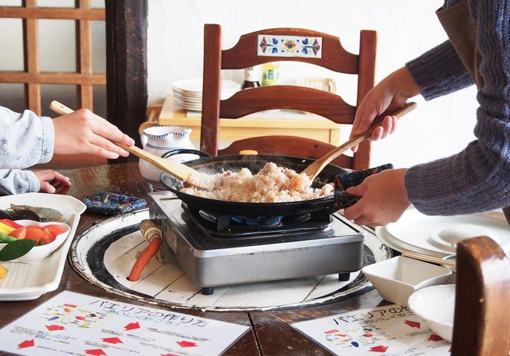 今回はこちらで、ランチを兼ねて、地元産のお米とたっぷりの魚介類を使った「パエリア作り体験」に挑戦します。