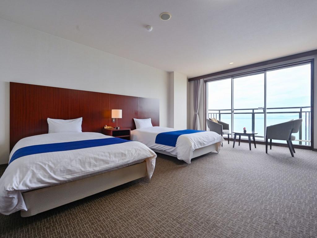 (右)海を望む客室は和洋室、洋室、和室の3タイプからセレクト可能