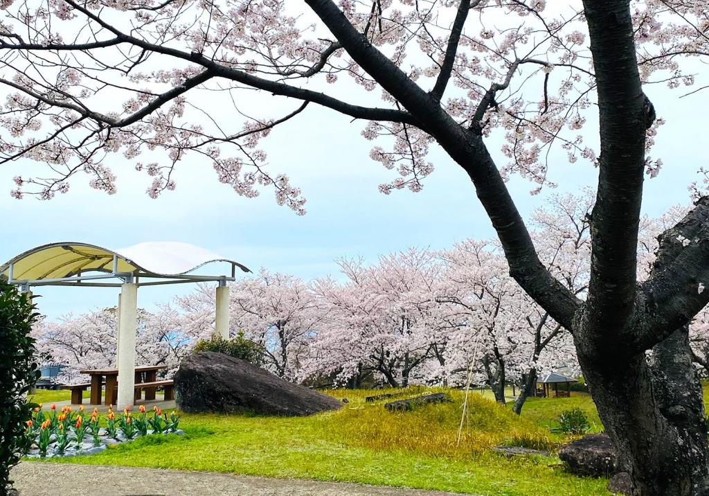駐車場の展望台からは水俣市街地が、頂上の展望台からは八代海が一望できる絶景スポットで、晴れた日には真っ青な空と海、不知火海に浮かぶ島々のパノラマを見ることができます。