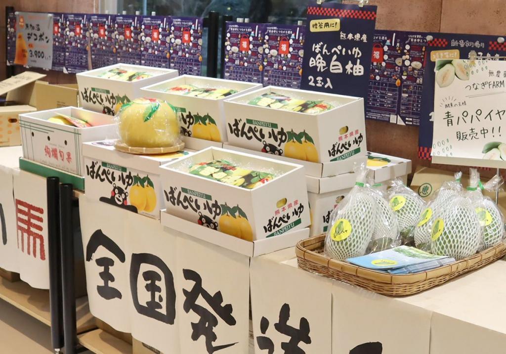 店内には、特産品のスイートスプリングやデコポンなどの柑橘類から海産加工品まで、今が“旬”の逸品がラインナップ。