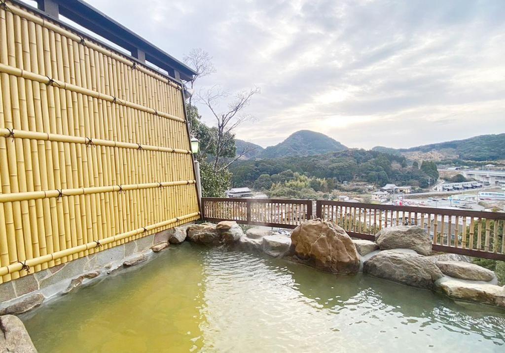 温泉にゆっくり浸かりながら、街並みや不知火海が一望できます。時間帯によっては新幹線も見えるそう。