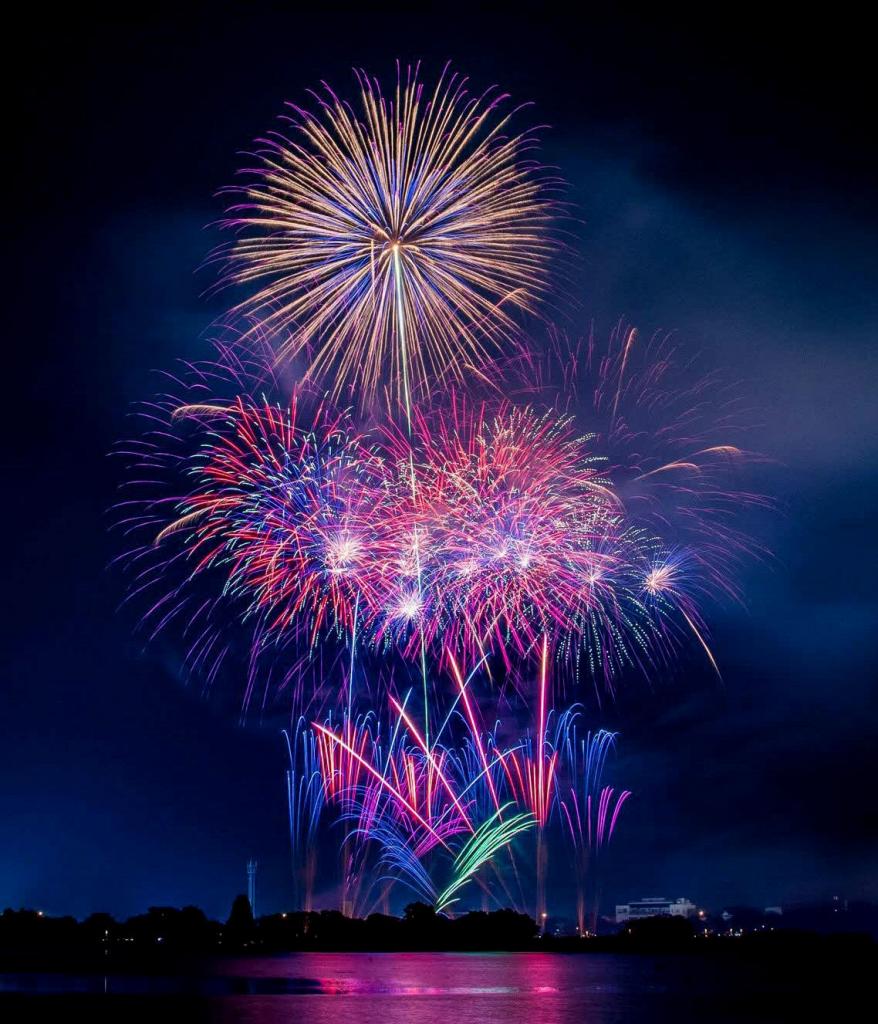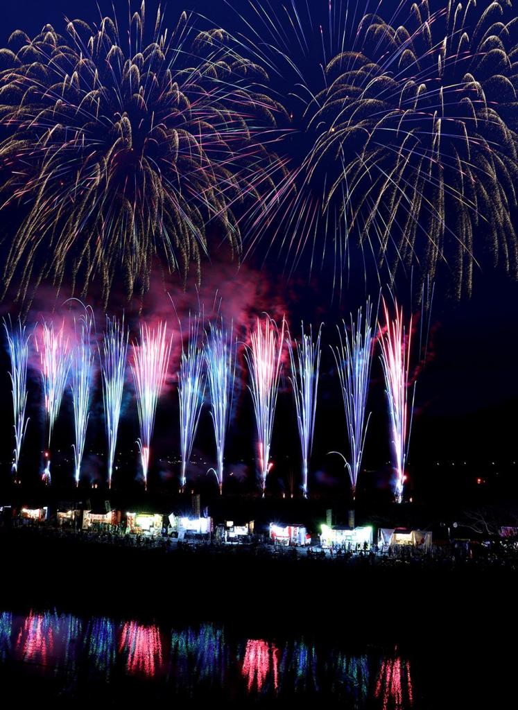スペシャルスターマインのオープニング花火や余興花火、ミュージック花火なども披露され、総数約14000発の花火が打ち上げられます。