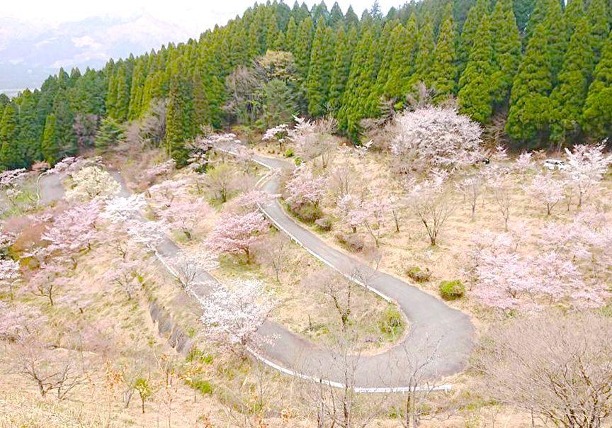 高森町のお花見ドライブの名所。ヘアピンカーブが連なる峠沿いに咲く桜は、ソメイヨシノやヤマザクラなど多種多様で、約7000本が咲き乱れます。
