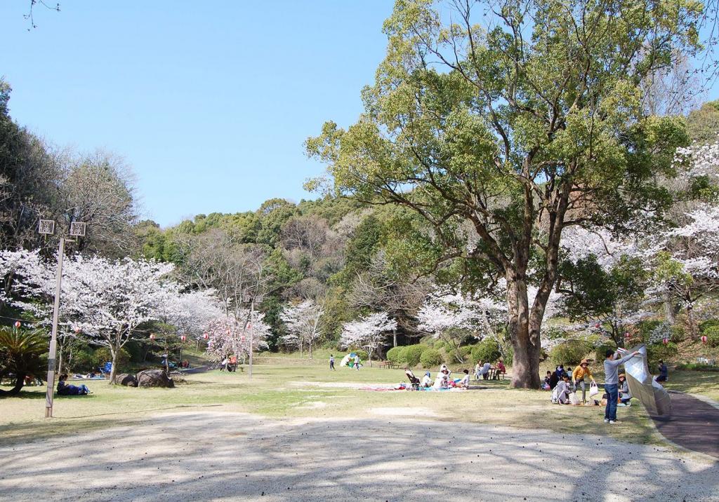 「くまもと緑の100景」にも選ばれた美しい眺望が自慢の公園で、春には桜並木が美しく咲き誇ります。