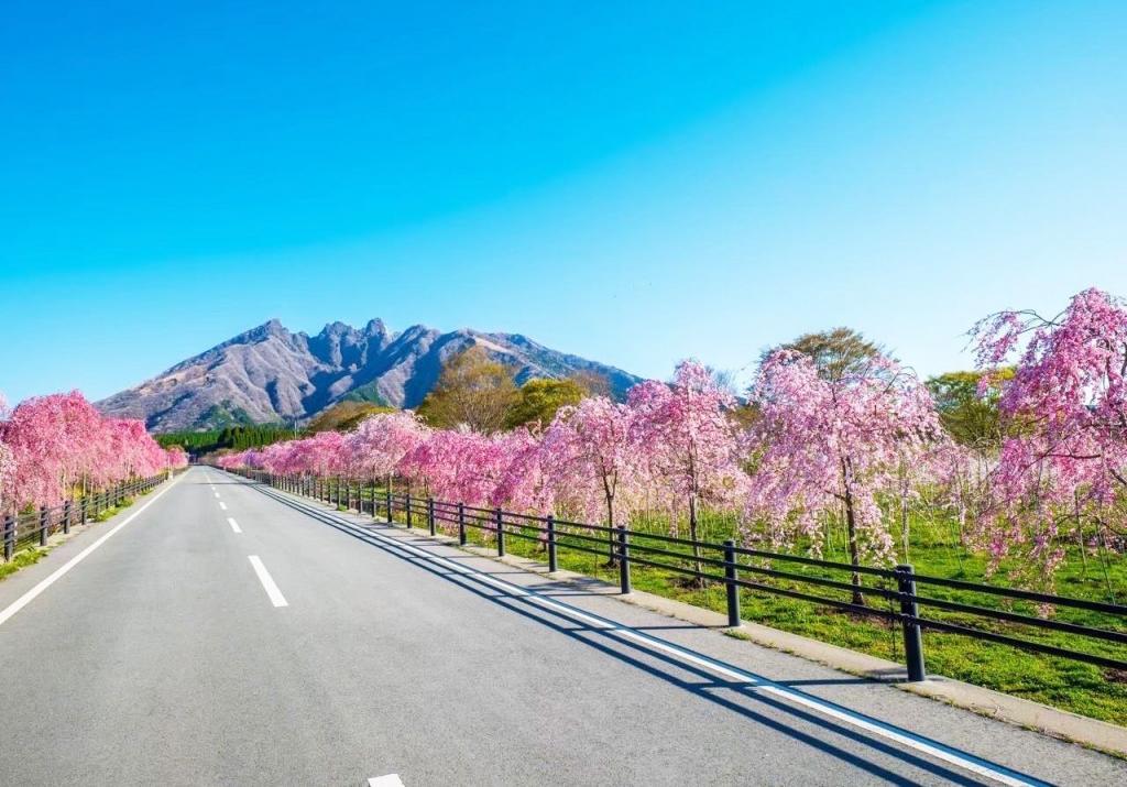 根子岳の麓、全長約2㎞に渡り桜並木が広がる道、その名も「サクラミチ」。2020年に3000本を植樹、その後毎年少しずつ本数を増やし、現在は10種類以上の桜が1万本以上咲くまでに! 根子岳を背景に美しい薄紅色が輝き、春の息吹を楽しめます。 シーズンにはキッチンカーフェスなども開催され、高森町の新たな桜の名所になっています。