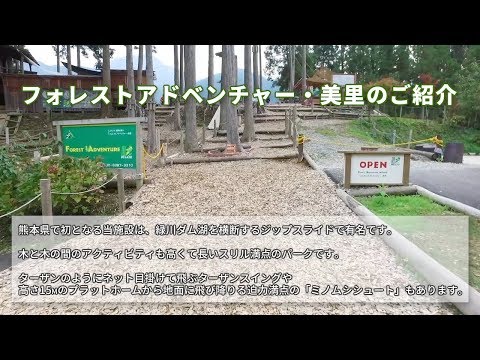 フォレストアドベンチャー ・美里は熊本県のほぼ中央に位置している石橋と石段の郷・美里町にあります。緑川ダム湖畔に位置し、谷を越えダム湖を見下ろすジップスライドは510mと日本最長!
