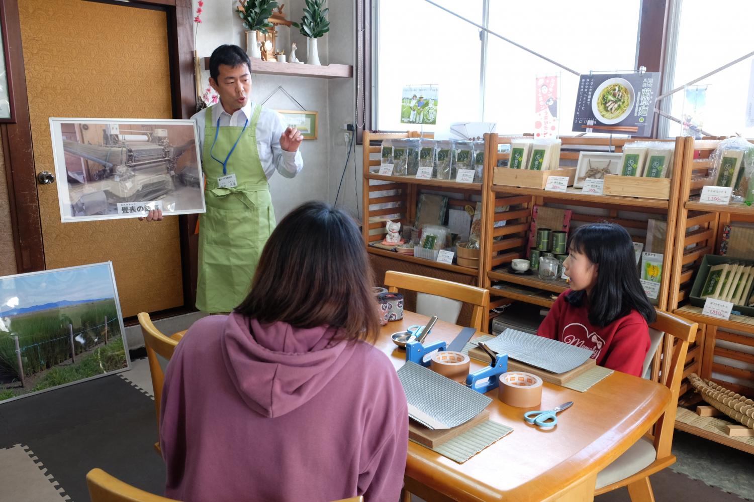 ①い草や畳の歴史と文化、い草の栽培や特性など先人の知恵を知る事ができる「講話」。