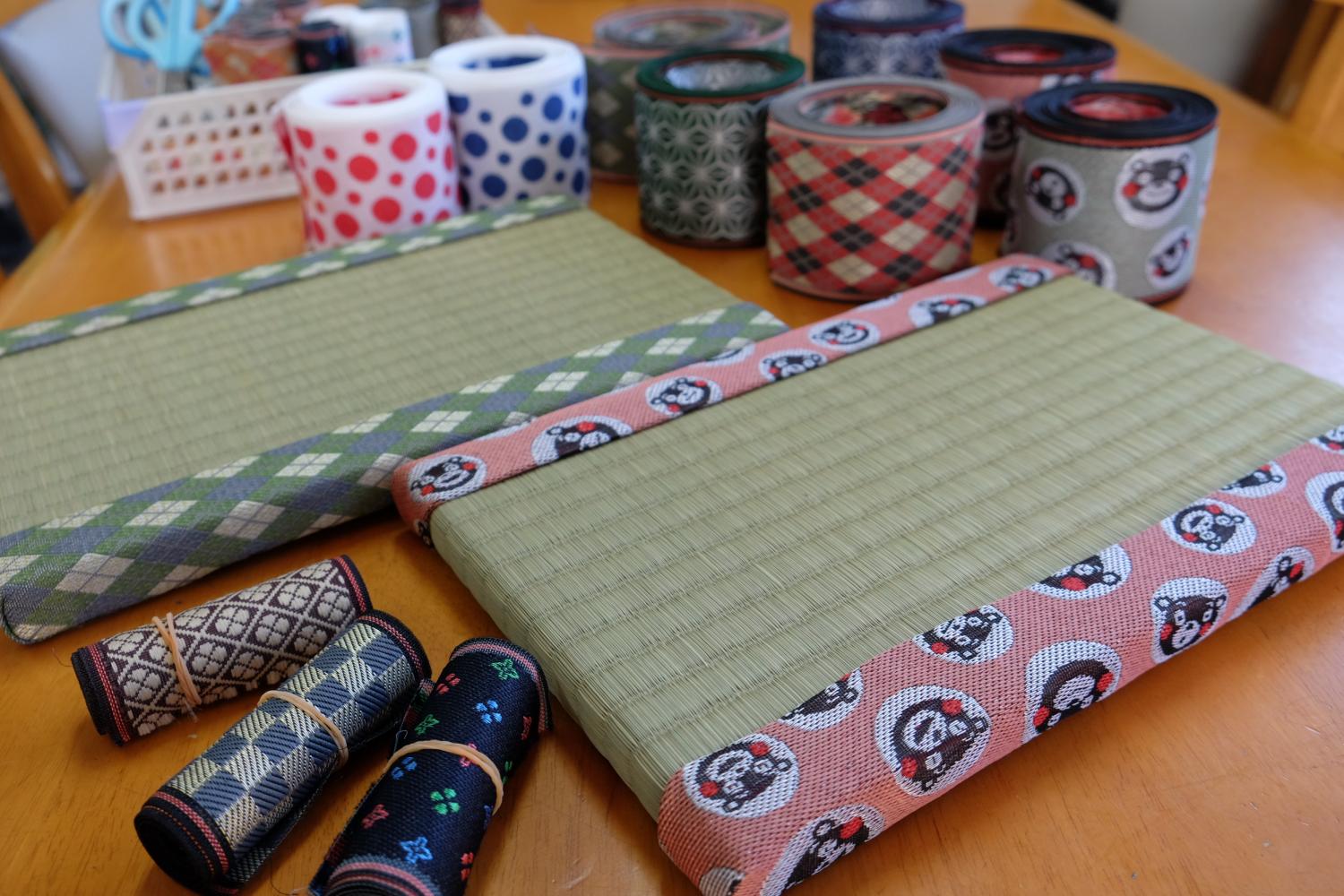 ②八代産い草の「畳表」と自ら選んだ「畳縁」を使い、物作りの楽しさを知る「ミニ畳作り」の体験。