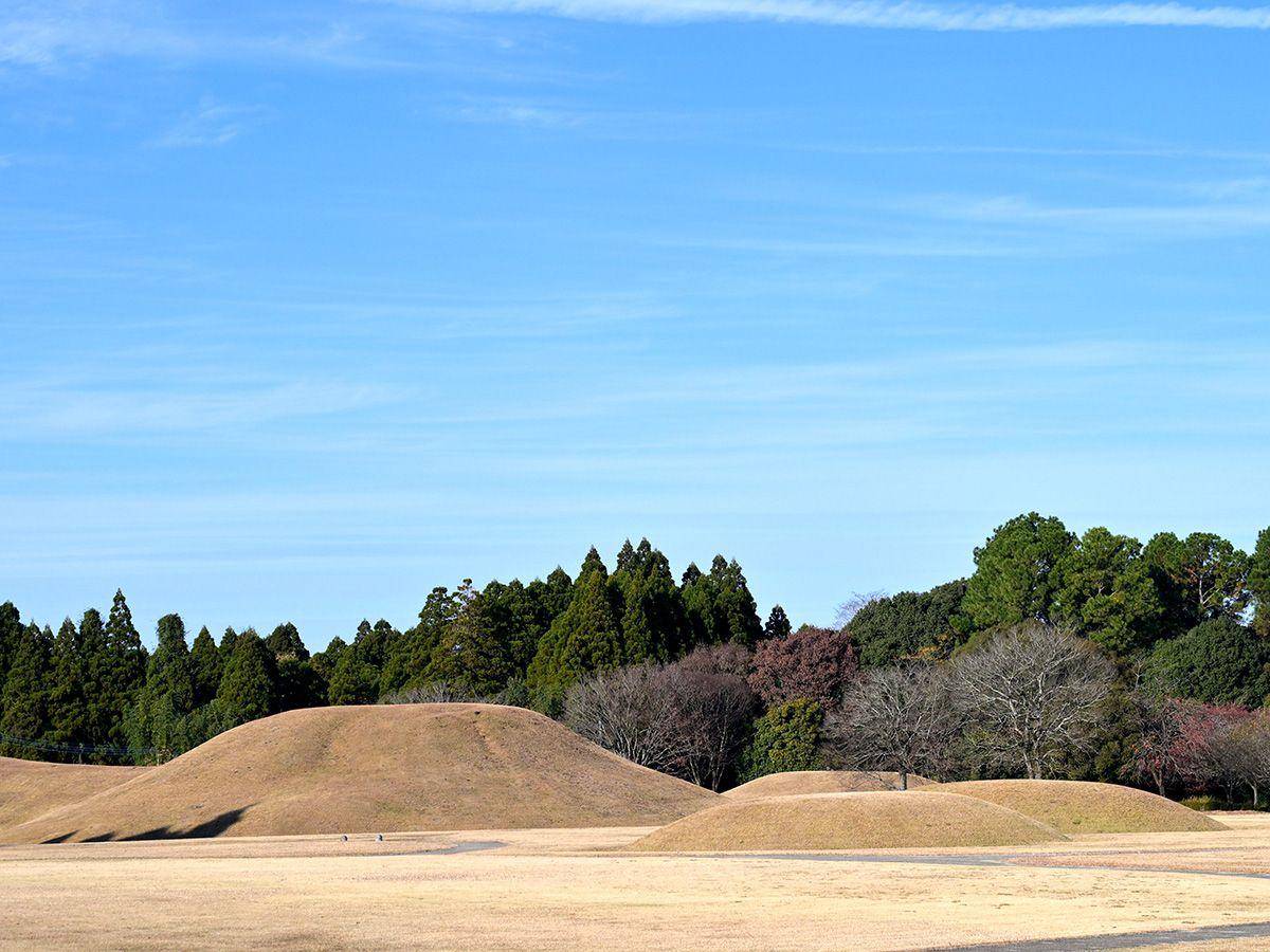 古墳群からは石棺等が出土しています。古代の一大墓所であったここ一帯は、緑の美しい古墳公園として整備され、近くには熊本県立装飾古墳館があります。