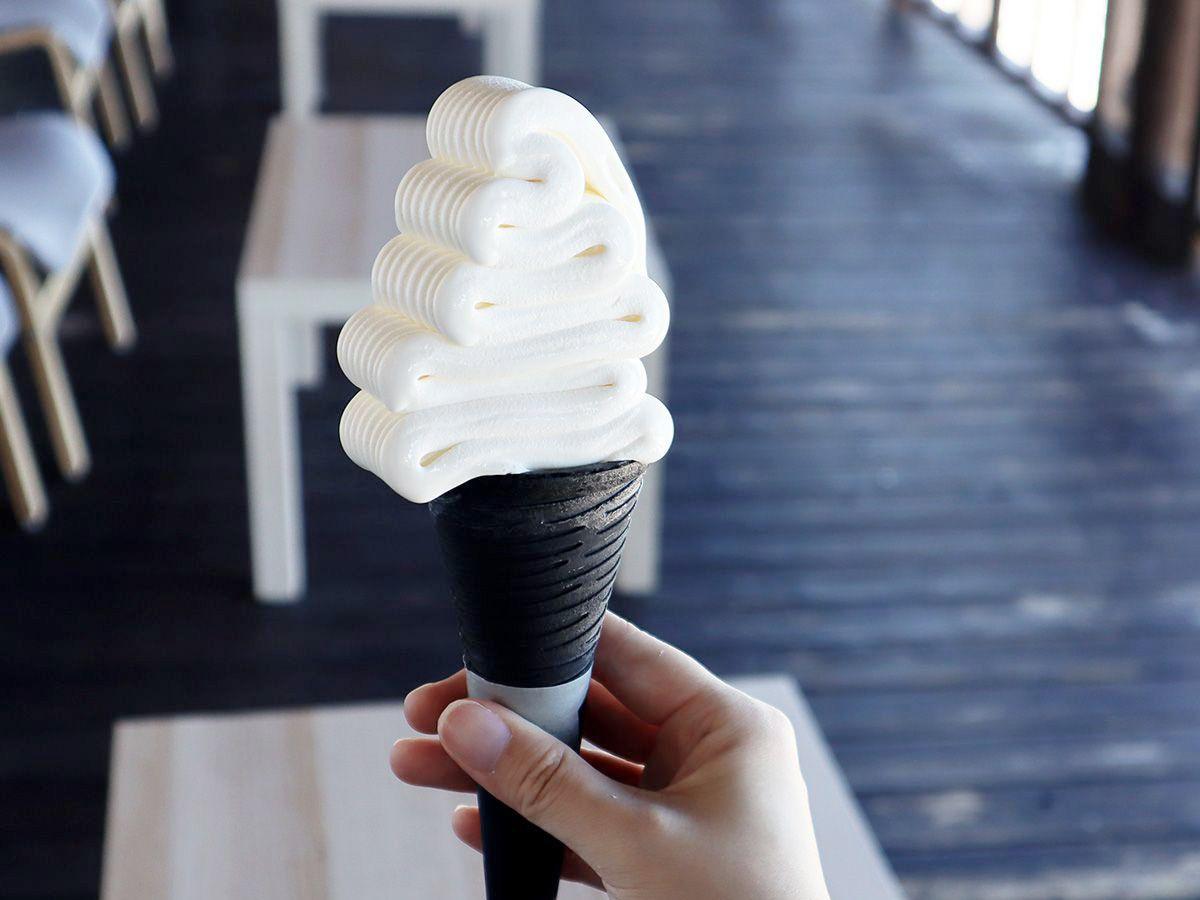 おすすめは“波”をイメージしたソフトクリーム、その名も「シラナミソフト」。一口食べてみると、かなり濃厚。口の中でとろけるクリーミーさと、後味にほんのりと感じる天草の塩のバランスが絶妙です。広いテラス席で海を眺めながら味わうのもアリです。