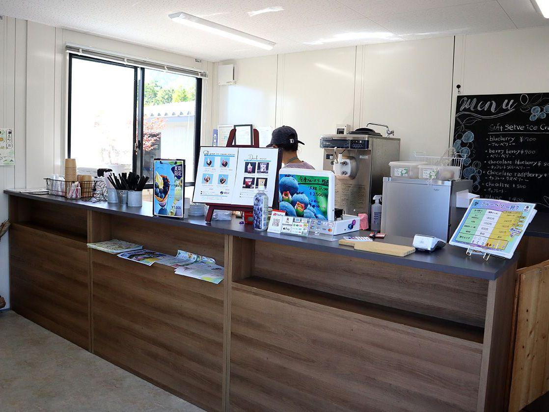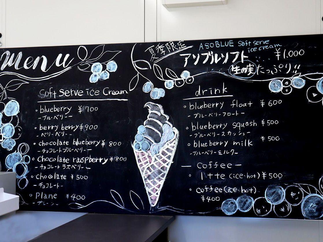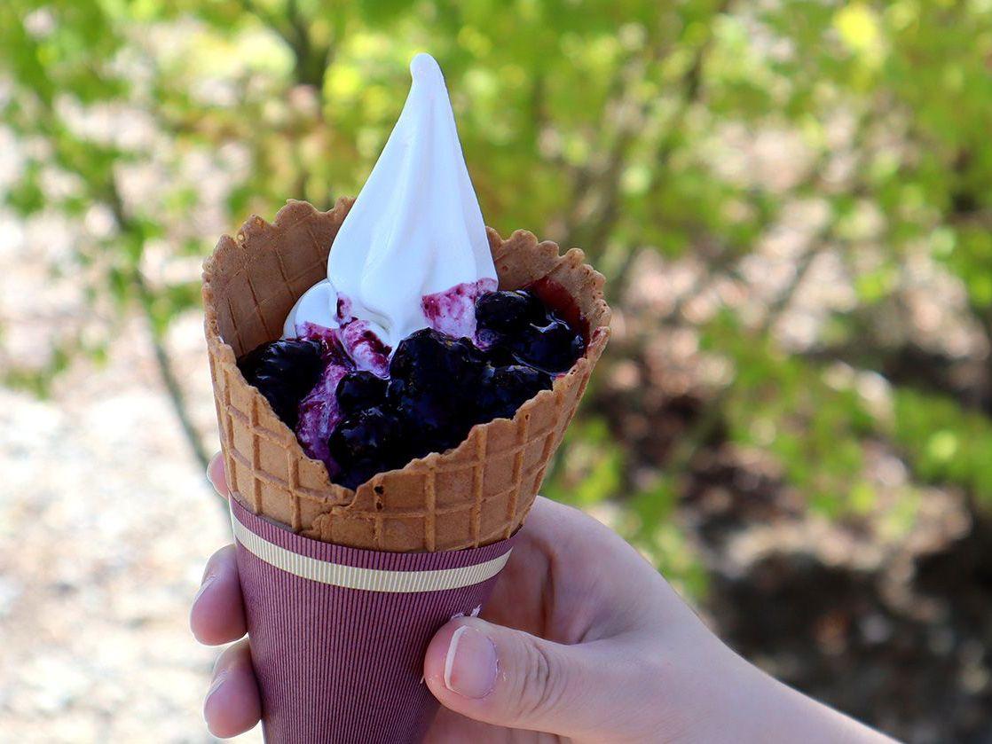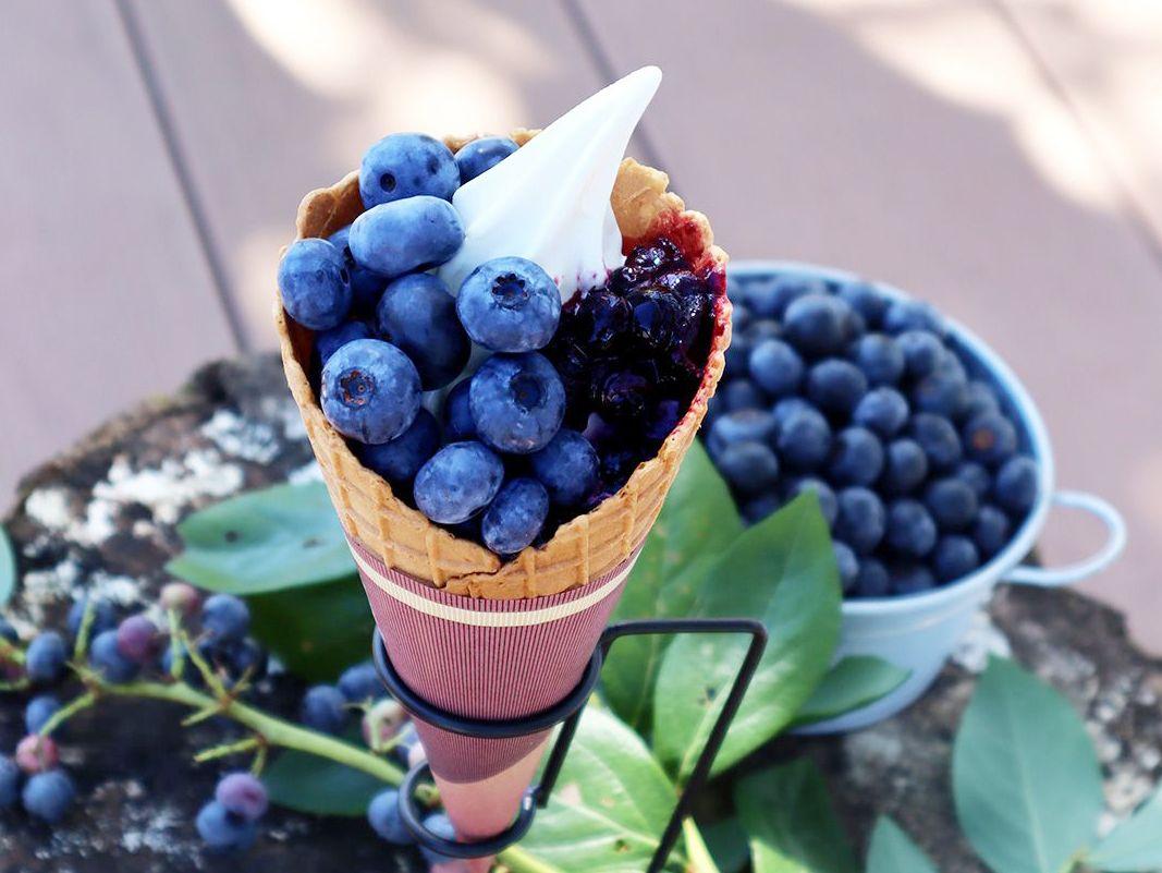 ブルーベリー観光農園内にある小さなカフェで、例年3月中旬~11月上旬頃まで営業しています。こちらで味わえるのは、東京ドーム約1個分という広大な敷地で育った農園のブルーベリーを使ったソフトクリームとドリンク。ソフトクリームは4種類ありますが、推しはブルーベリーソースがたっぷり入った「ブルーベリー」。濃厚なソフトクリームとの相性が抜群で、一緒に味わうとソースのフレッシュさがさらに際立ちます。シーズンの8月は、農園で収穫したブルーベリーの実が「これでもか!」という程にトッピングされた夏季限定の「アソブルソフト」が登場。そのほか月限定メニューも人気です。