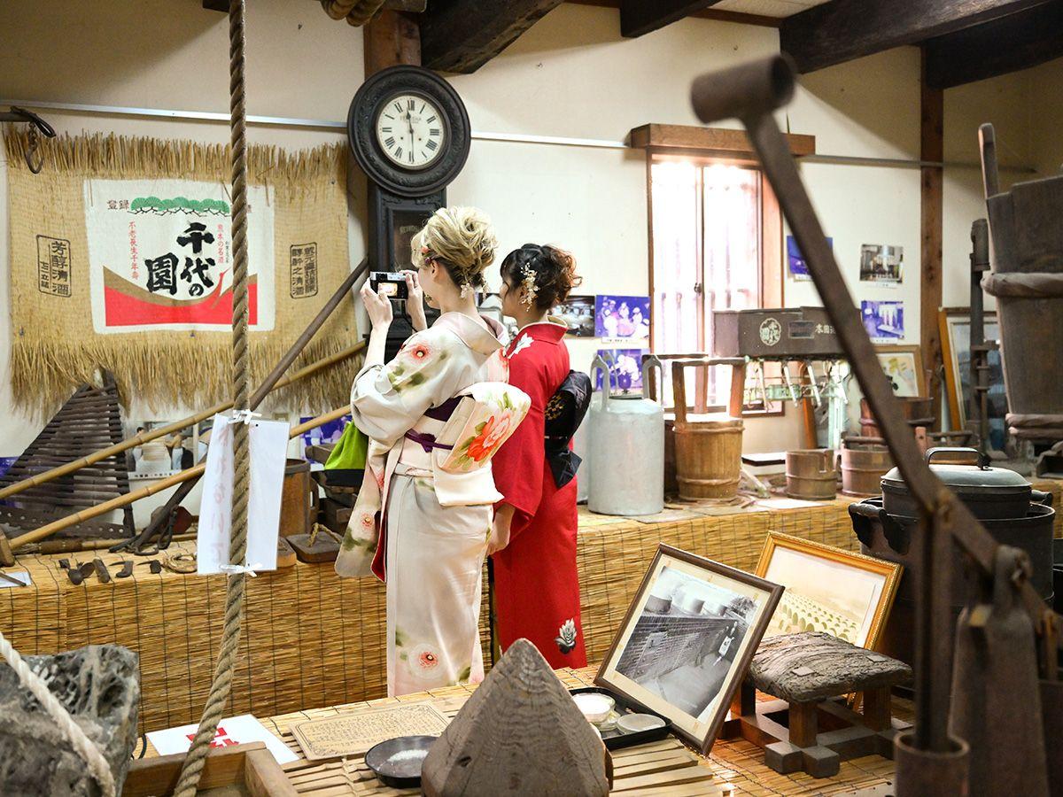 敷地内には「酒造史料館」もあり、無料で見学が可能。売店も併設されています。
