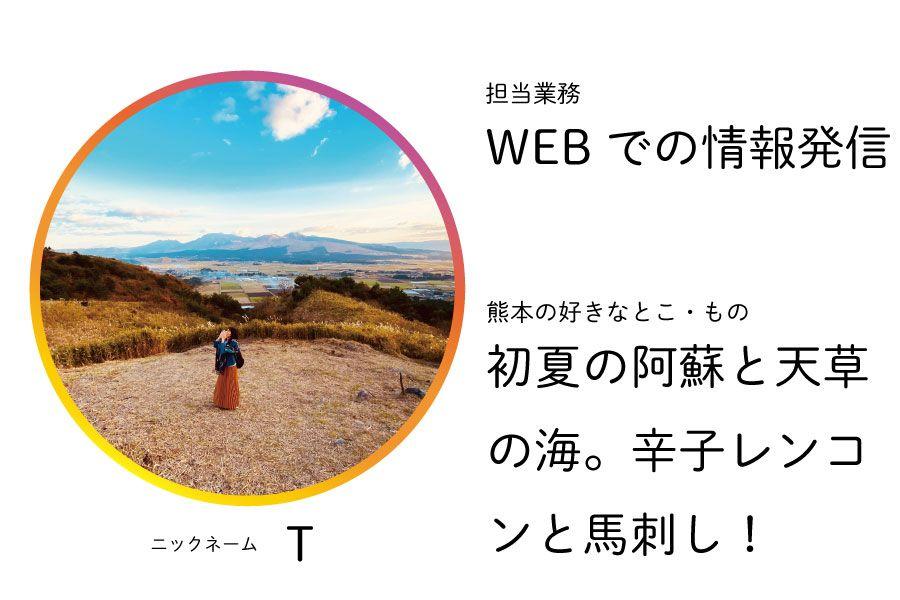 熊本県観光連盟の職員たちが日常を投稿するInstagramアカウントのフォロワー150人突破を記念して、投稿しているスタッフの自己紹介を掲載いたします。