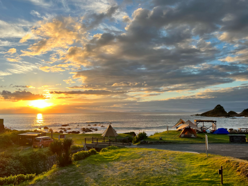 どこもかしこもオーシャンビュー! 天草下田温泉から車で約7分、天草西海岸の入江にあり、キャンプ場と一棟貸しのゲストハウス、コテージを備える施設です。